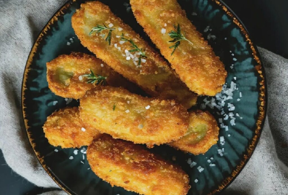 - Melegítsd az olajat kb. 175–180 °C-ra és kis adagokban süsd az uborkákat aranybarnára, kb. 2–3 percig. Papírtörlőre szedd ki, hogy a felesleges olaj lecsöpögjön.