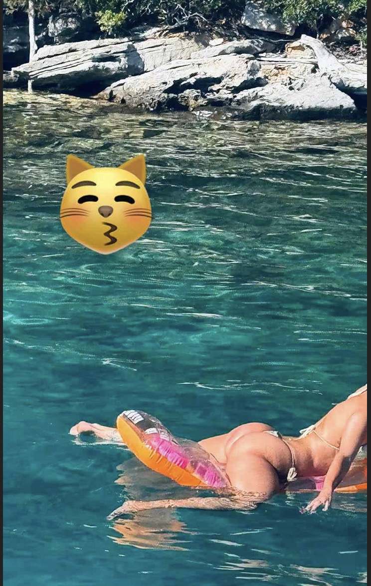 Aztán jött a hajós szett: a 25 éves modell egy gumimatracon terül el, arccal lefelé, miközben a kamera csak egy dolgot talált rajta igazán érdekesnek.