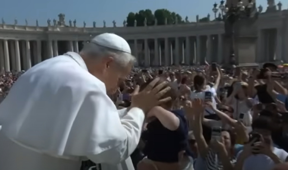 XIV. Leó pápa az emberek közé ment, és így áldott meg kisbabákat, gyerekeket